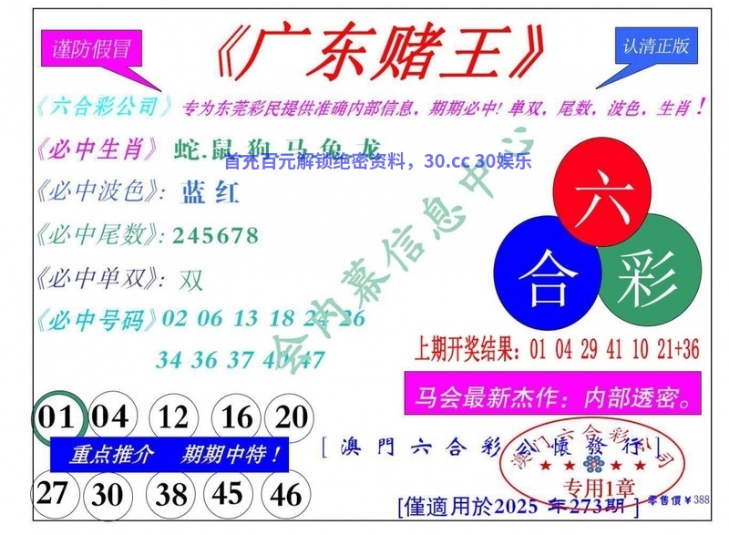 275期:冠军四头【1.2.3.4头】开:發00准 |
